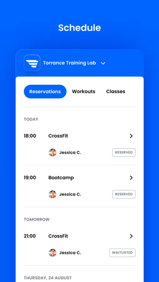 For members of Torrance Training Lab to reserve their place in a class, sign up for gym events, purchase product pre-orders and general account management like updating headshots and credit card on file.