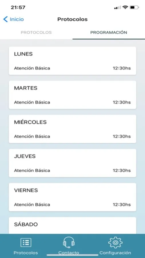 También tendrán la opción de apretar el botón de "Contacto" en caso que necesiten ayuda y nuestro equipo medico tomara contacto telefónico con el paciente.