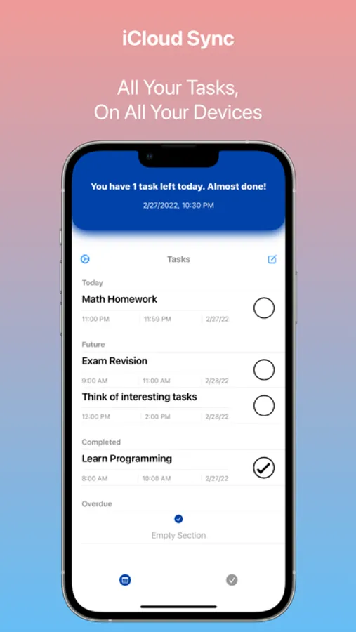 PlanTask securely stores your data in iCloud so you can even view them from any of your iOS devices.