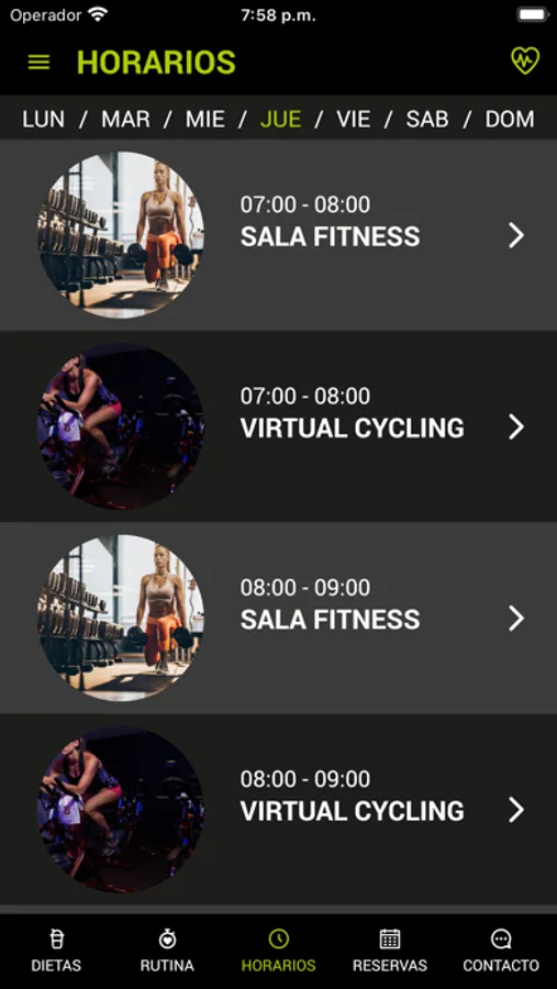 Nuestra APP cuenta con un novedoso sistema de reserva de clases integrado desde el que podrás reservar plaza en tu actividad favorita, con solo pulsar un botón sabrás si hay plaza disponible o entras en lista de espera. Olvídate de tener que llamar por teléfono, de apuntarte en listas, de coger tarjetas, de hacer colas en la puerta de la sala... queremos dejar atrás todo eso y este es el momento.