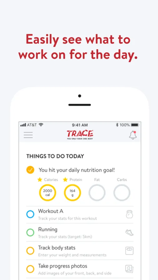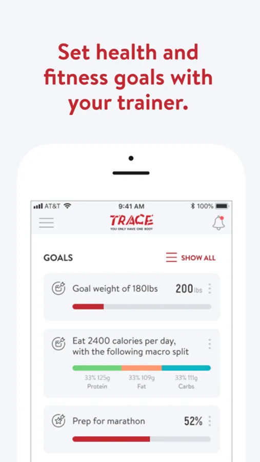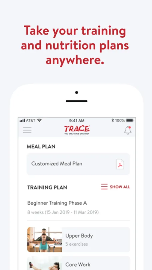 With the TRACE ONLINE App, you can start tracking your workouts and meals, measuring results, and achieving your fitness goals, all with the help of your personal trainer.