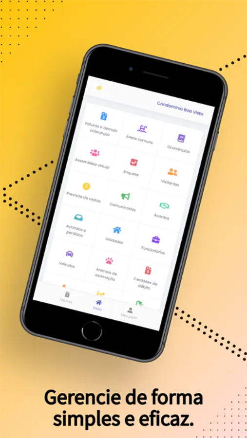 Realize diversas ações de maneira rápida e ágil, visualize suas faturas, reserve áreas comuns.