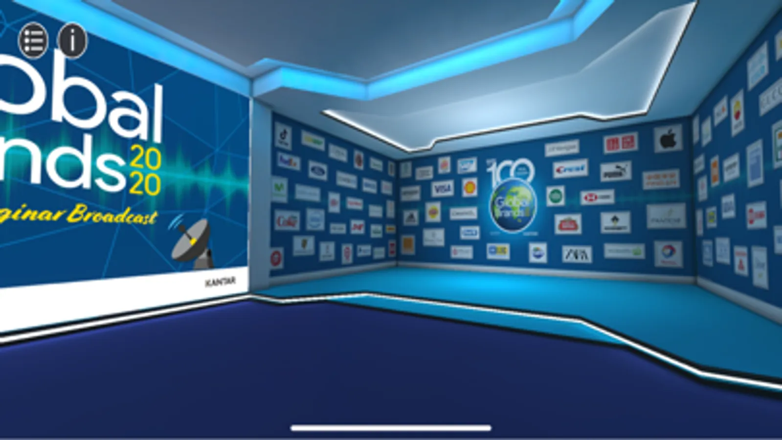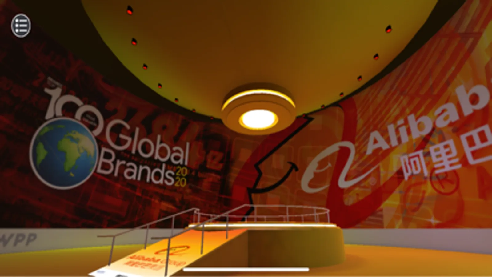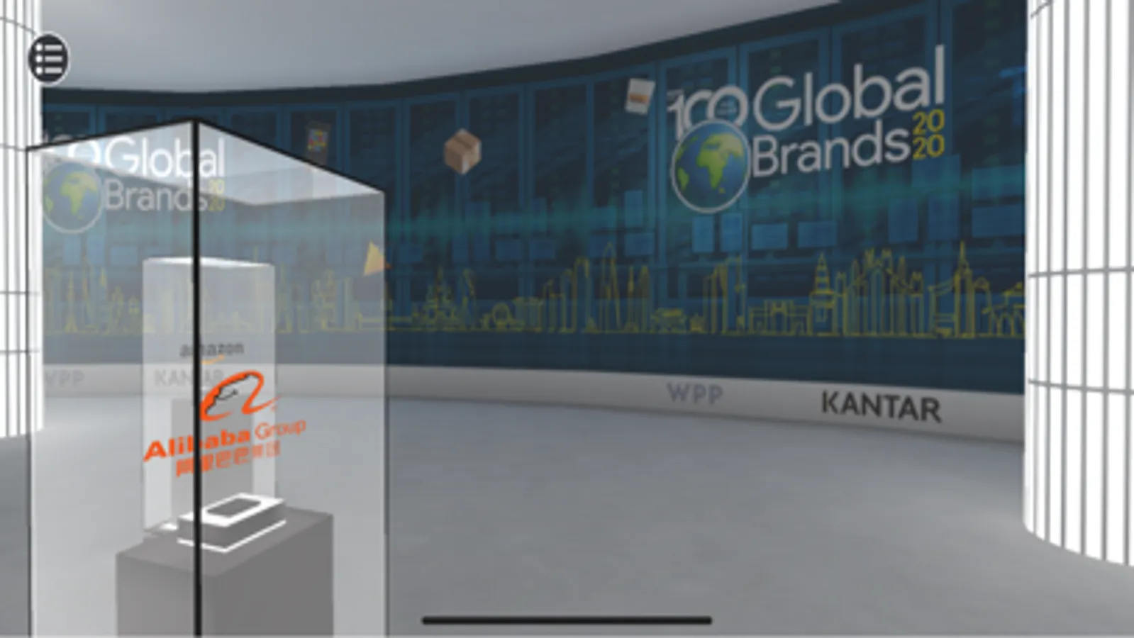 Tap your finger on the floor in the virtual space you wish to move to, and you will automatically travel in that direction. Tap and drag to look around each room as you move or stand in a room. Once you have explored the content of a room go to the top left-hand menu button and see the range of conference locations available to explore. Tap on the black arrow to go to that location. The menu is accessible at any time.