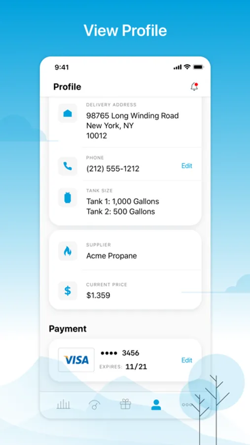 With the Tankfarm app you also have total visibility into your current pricing, as well as the pricing on previous deliveries. You can manage payment methods, and also ask for help from our Tankfarm advisors right from the app.
