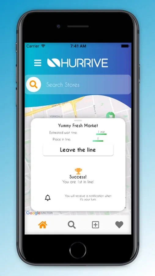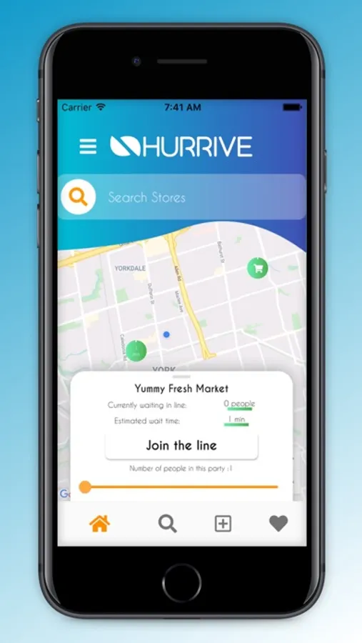 Join your favorite store or restaurant's existing wait line with ease. Hurrive lets you see how many people are in front of you, how long your wait will be, and even notify you when it's your turn to go. Don't just arrive, hurrive!
