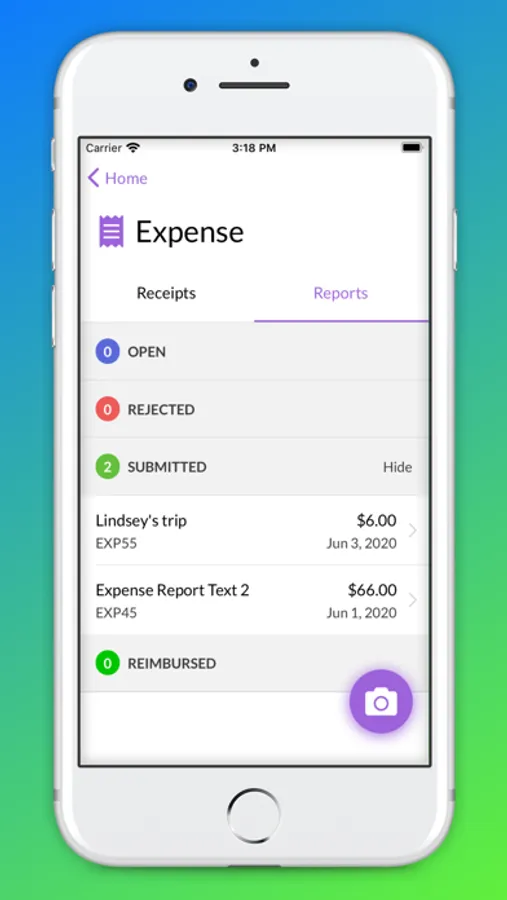 Capture receipts, submit reports for approvals, approve and reject expense reports.