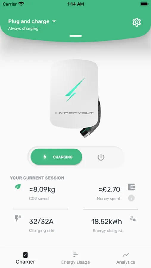 The Hypervolt App is the perfect companion for your Hypervolt Home 2.0 smart charger! With Hypervolt, you can unlock the full power of smart charging, minimize your bills, track your spending, and more!