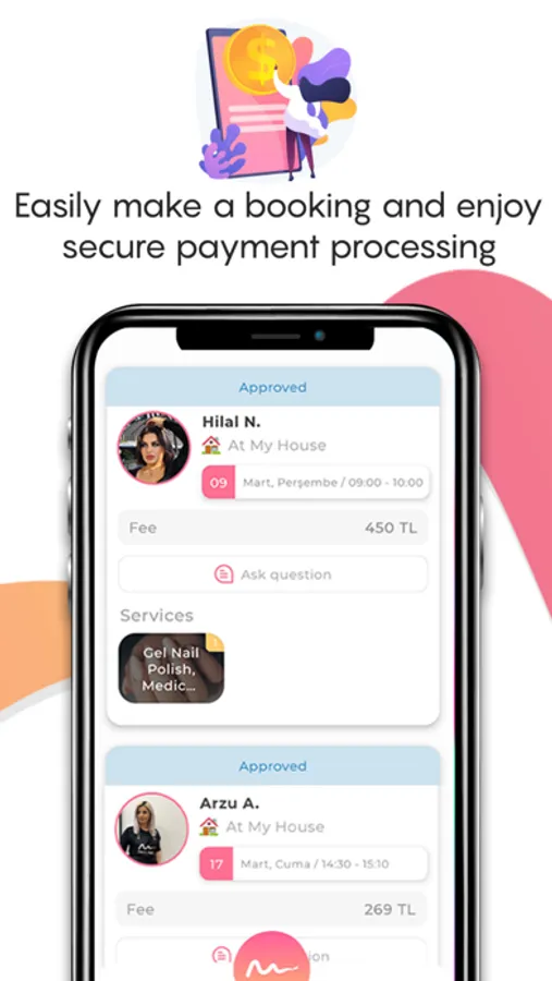 Thanks to our online secure payment system, Melo App keeps your money in a pool account until the confirmation that you have received the service, and your payment is not transferred to the artists until the appointment is complete.
