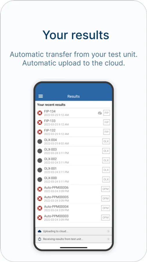 - Automatically transfer your results from your test unit to your cloud workspace (even if your mobile app is in background).