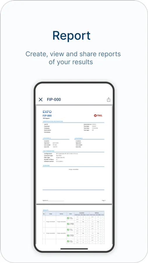 - Share your EX1 and EX10 results from the EXFO EXs app to Exchange.