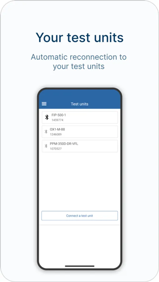 - Connect and configure your OX1, FIP-500, FIP-435B and PPM-350D test unit from your mobile device.