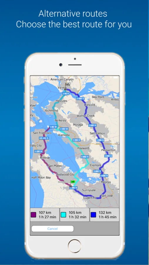 - Alternative routes - select from up to 3 pre-calculated routes. Use the one which suits you the best.