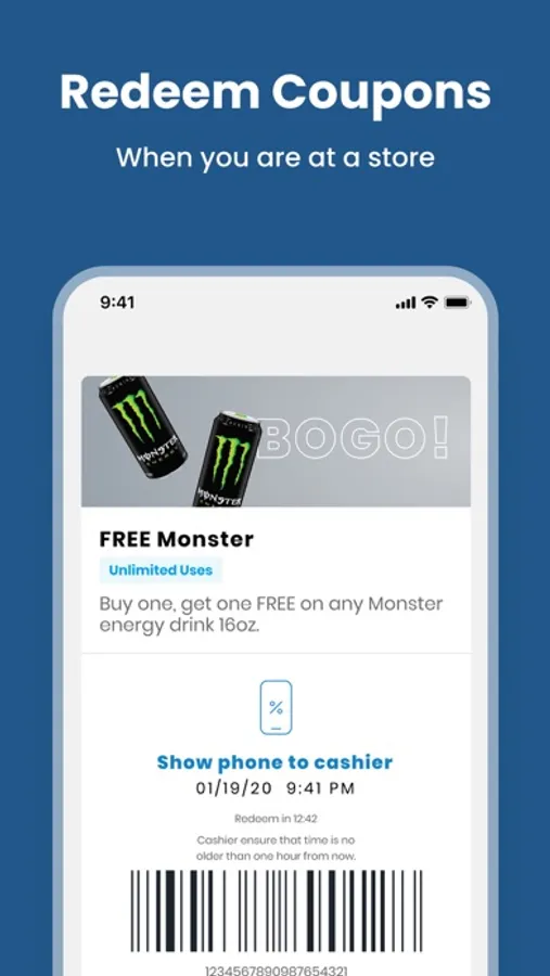 Simply tap the orange redeem button and show your phone at purchase to redeem your coupons.