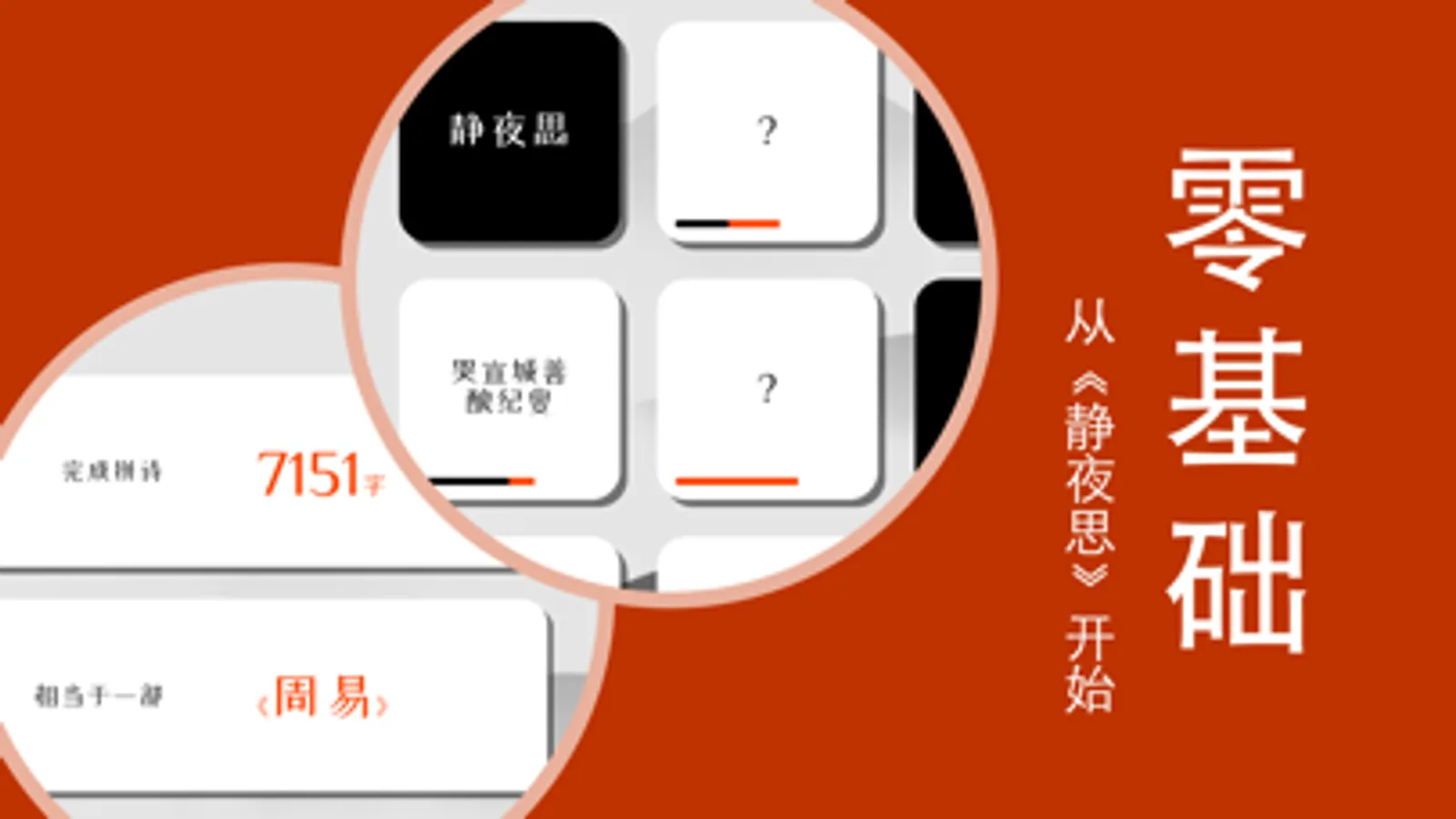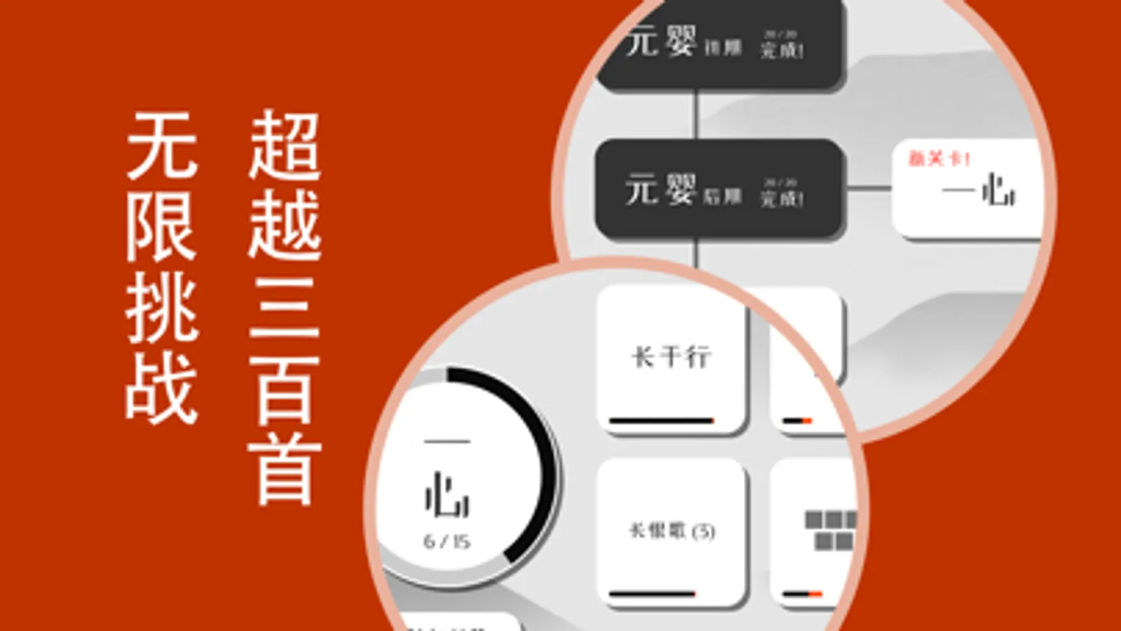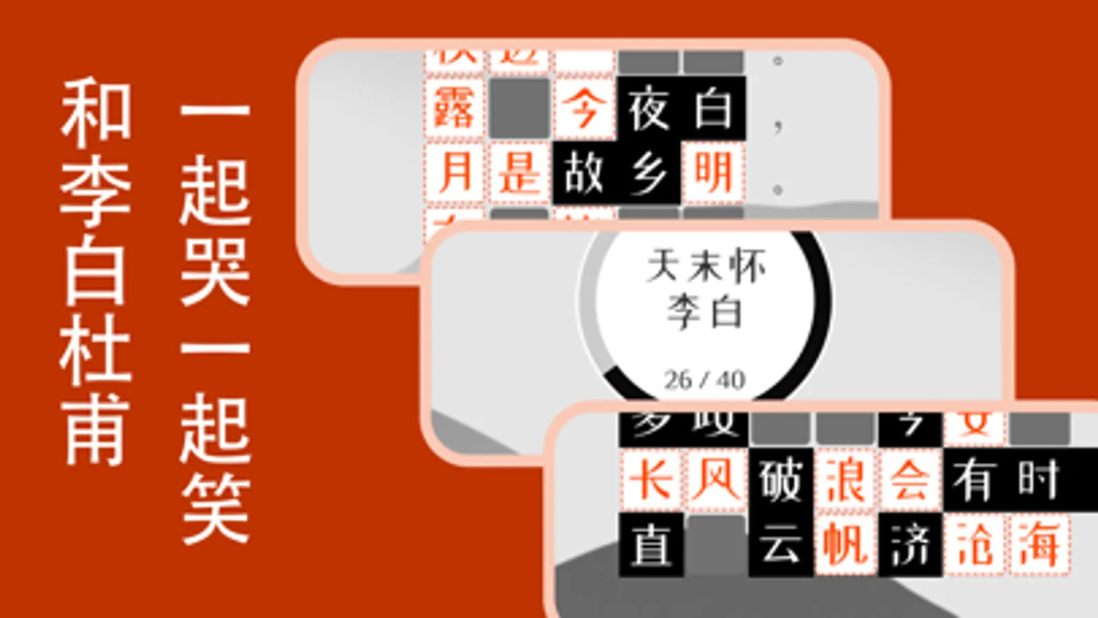来玩!会中文,就能玩。零基础唐诗游戏。从“床前明月光”开始,循序渐进,征服《唐诗三百首》。