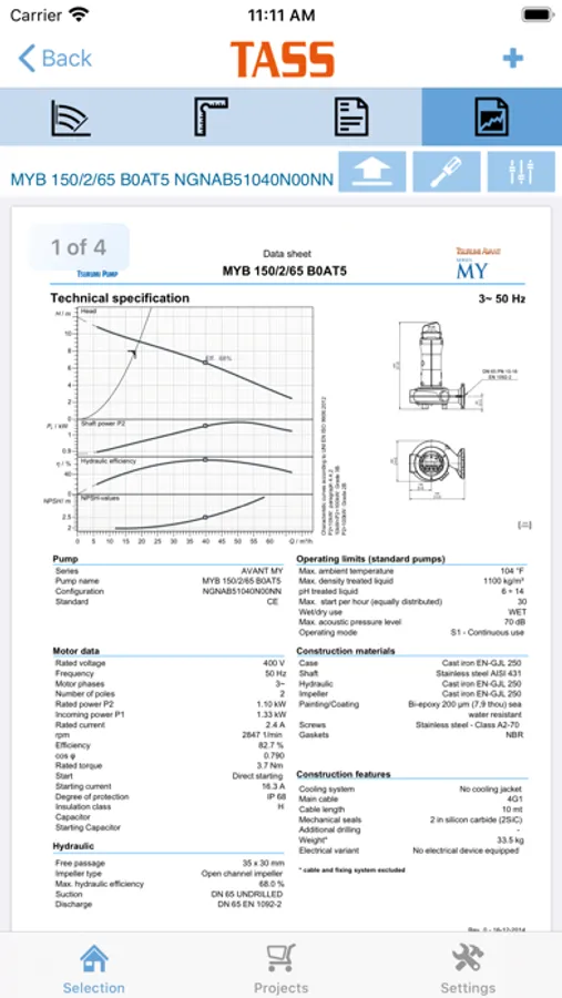 TASS Pump Selector, offered by Tsurumi, is a high-performance application for the mobile-supported selection and configuration of Tsurumi AVANT submersible pumps. In addition, the software provides valuable support throughout the entire sales process. Whether you are an engineering office or an end-user, the software is an extremely efficient tool allowing you to manage all kinds of activities. You can determine pumps that correspond to the operating parameters suitable for your site via the Hydraulic selection or you can directly select them from the list containing the available products by using the Pump selection browser.