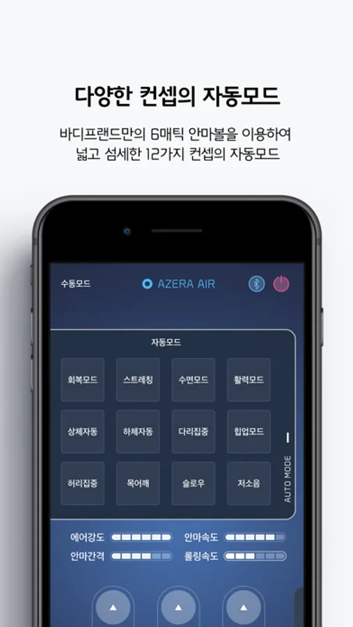- 야간에 부담없이 사용할 수 있도록 저소음 모드 위주로 설계된 안마 모드