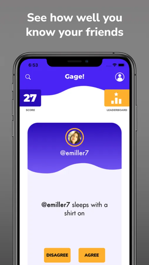 Gage is social trivia. Guess how your friends answer certain questions. Does your best friend expect a kiss on the first date? Do your classmates pee in the shower?