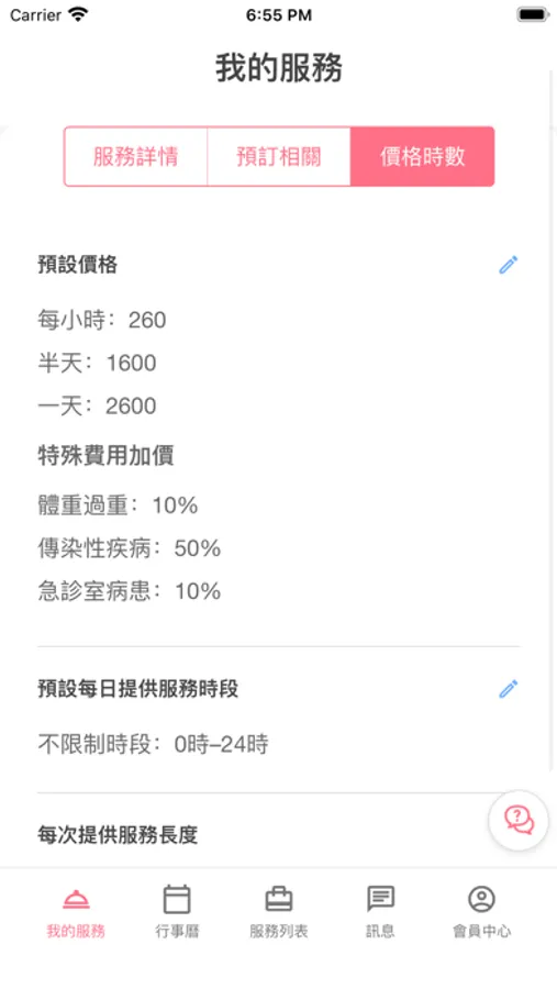 自訂價錢、服務項目、服務地區、自己選擇要不要接案,有接案才會收超低的平台手續費。