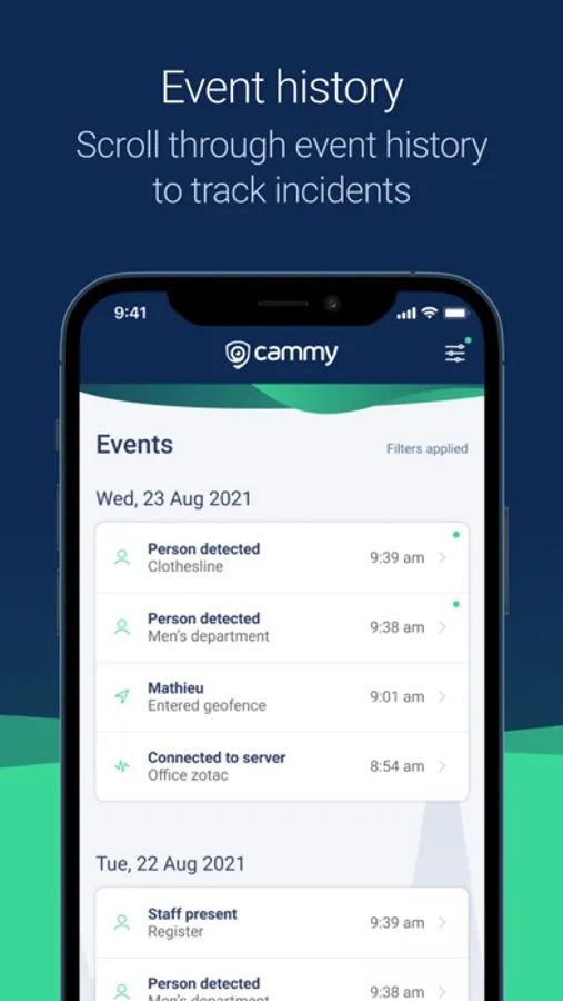 View a history for each camera on your account. This mirrors the event timeline from the Cammy desktop app, ensuring you have access to the same events and bookmarks wherever you are.