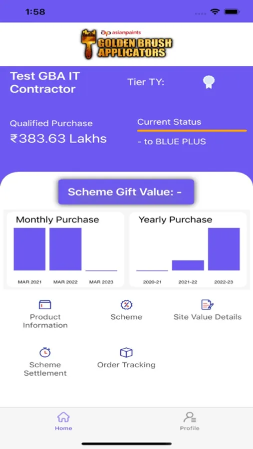 This application can be used by Asian Paints Project Sales Applicators to view their performance in the Golden Brush Applicator (GBA) program, track status of their Orders with Order ID and Dealer Code, view information on Products, upload profile picture, call Helpline and calculate potential benefits from the GBA program.