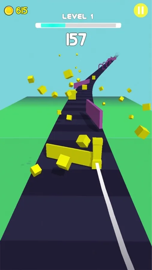 Knock off all the yellow blocks! Avoid the obstacles and if you can hit a cloud, you'll get bonus points. Good luck!
