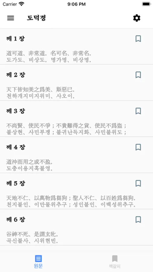 2. 책갈피를 선택한 장은 책갈피 탭에서 따로 모아서 볼 수 있습니다.