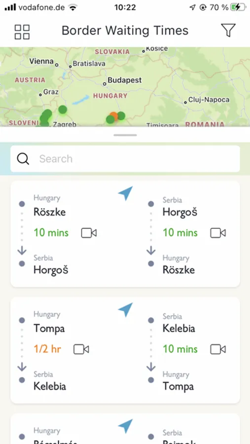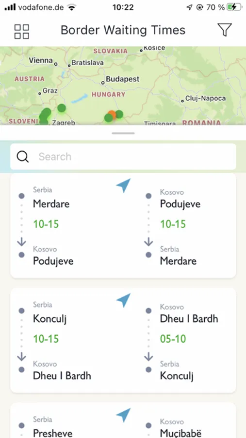 With iRoute you can see at a glance how long your trip will take. The app helps you find the best and fastest routes through the Western Balkans. It shows you the waiting times for all border crossings in the West Balkans and gives you an overview of the current situation at the borders. With the live stream function you can get an even better picture of the situation.