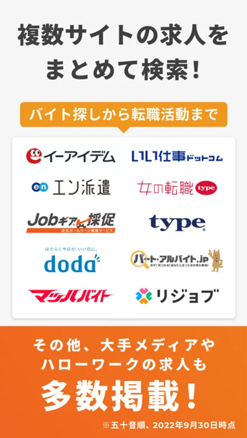 ハローワーク/タウンワーク/type/マイナビ転職/マイナビバイト/ミドルの転職/doda/バイトル/フロムエー/バイトル/リスジョブ/イーアデム/キャリアインデックス/....など