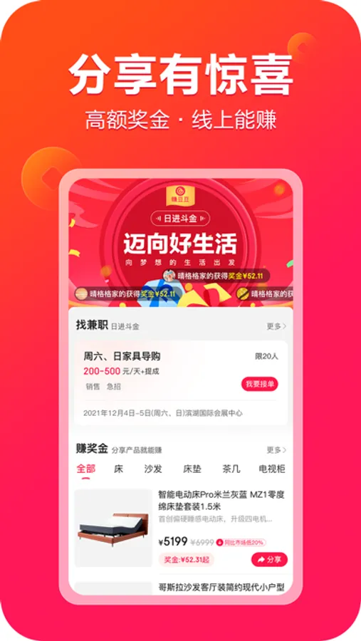 赚豆豆向用户提供分享优质家装产品的渠道以及提供兼职渠道。