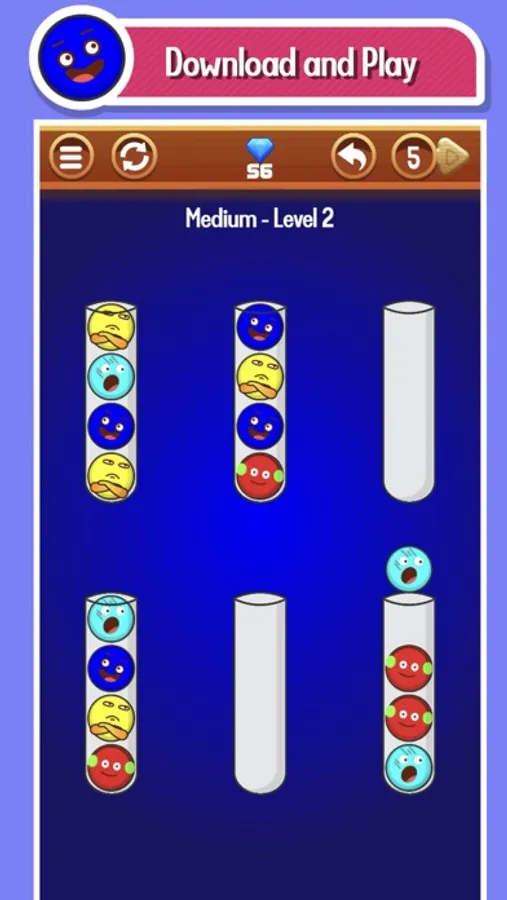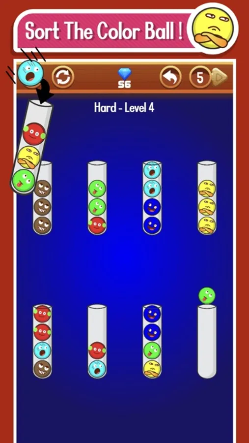 - Tap any tube to move the ball on the top of the tube, then tab any target tube to move the ball.