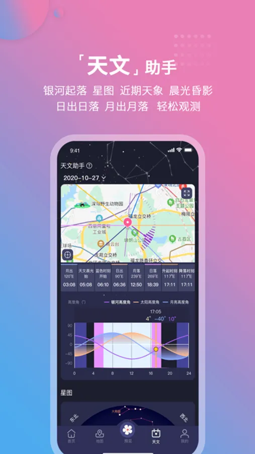 全球特殊景观、天气服务类平台,支持全国近3000多个城市的朝霞、晚霞、云海、雾凇、星空、银河等16项特殊景观的预报、信息订阅、推送以及覆盖全国的基础天气预报服务。更完善的预报功能、更贴心的场景化服务——莉景天气2.0版为您所热爱的生活而生。【每日实况天气】温度/湿度/风级/雨雪量/空气质量/能见度,一目了然精准预报;【特殊景观精准预报】朝晚霞/云海/雾凇/彩虹/潮汐/银河/观星/分层云量/片晶/柱晶/视宁度/光污染,未来预报提前预测【预见-为热爱生活而生】记录摄影生活、交流摄影心得、分享摄影作品,海量内容尽收眼底;【机位分享】观星机位/摄影机位,让拍摄不再迷茫【天文助手】银河起落/星图/近期天象/晨光昏影/日出日落/月出月落,轻松观测。