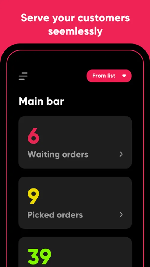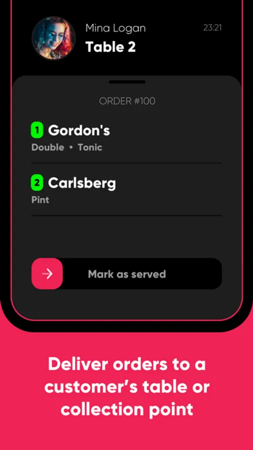 Process food or drink orders simply and safely and deliver them to a table or chosen collection point.