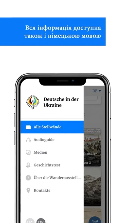 Рада німців України підготувала унікальну мобільну виставку «Німці в Україні: історія і культура», яка систематизує історичну інформацію про німецьку меншину України. Впорядковані за темами, ці дані представлені у додатку німецькою та українською мовами і проілюстровані картами, документами, фотографіями і статистикою.