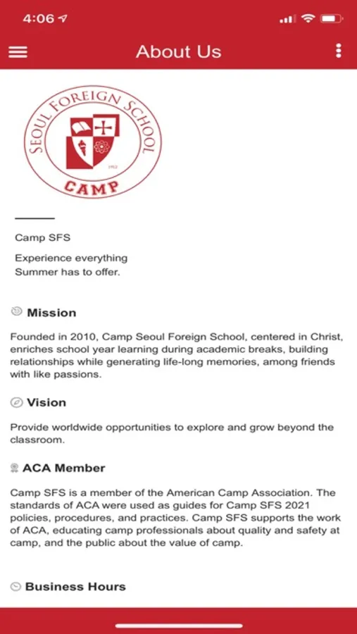 You can also access our social media pages directly from the app. Easily find all contact details or dial Camp SFS.