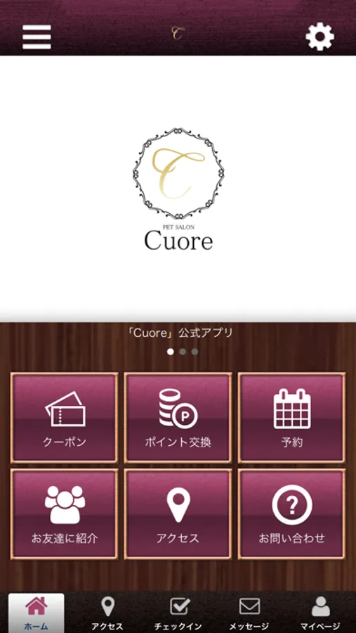 このアプリでは、Cuoreの最新情報の受け取りや便利な機能を使う事ができます。