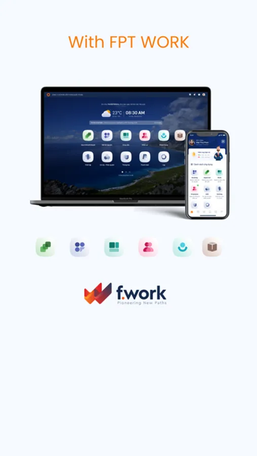 Các ứng dụng của FPT WORK được phát triển đồng nhất trên nền tảng Web và Mobile, hỗ trợ làm việc và theo dõi công việc từ xa, đáp ứng được mọi đặc thù công việc, phù hợp với mọi loại hình doanh nghiệp và lĩnh vực hoạt động.
