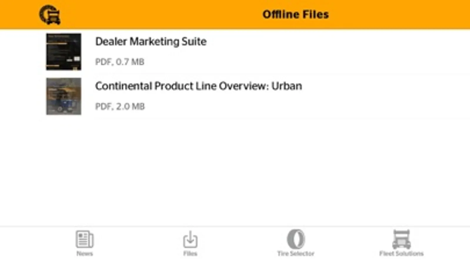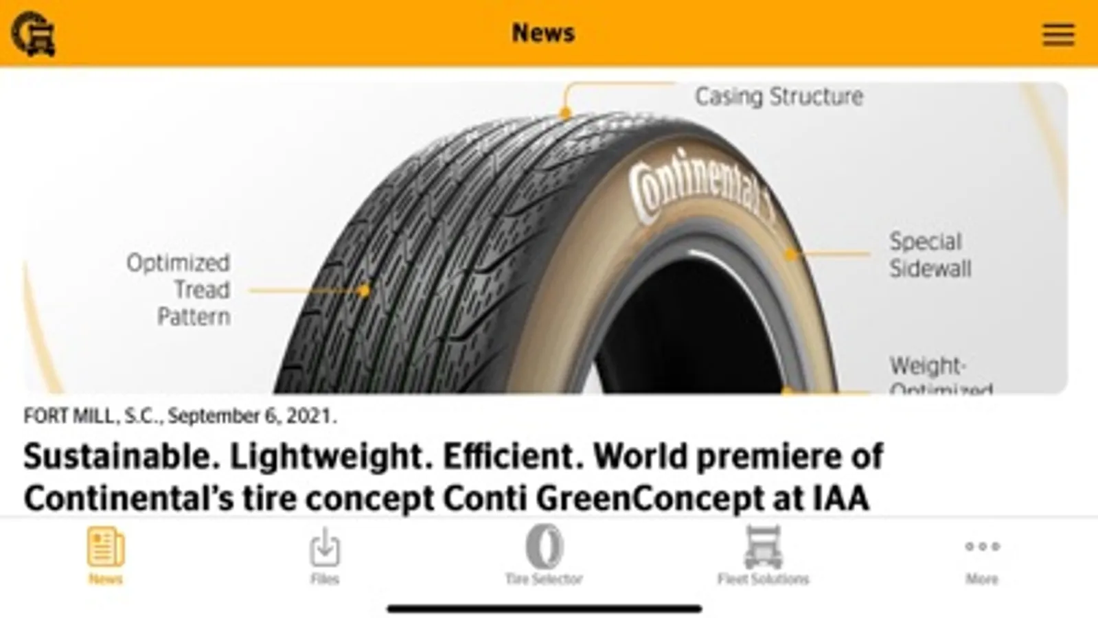 This app offers many capabilities, including access to News, Fleet Solutions, and Continental Truck Tire Product information. Documents are available for off line usage upon selection and documents can be shared.