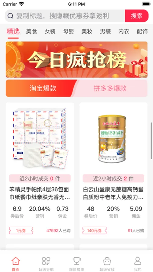 “省钱了”App为国内领先的智能优惠劵导购平台,集合淘宝、京东、拼多多等各大电商平台,整合大量线上线下资源,用户可以在这个App中领取主流平台的商品隐藏优惠券,为广大消费者提供更加便捷省钱的购物渠道,给到消费者更好的购物体验。