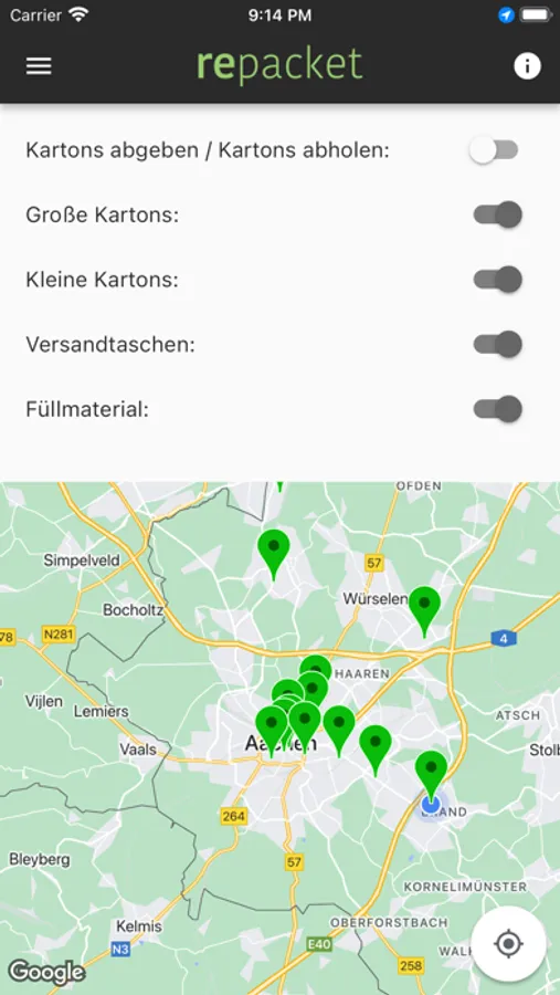 Auf der Karte siehst du Händler, die sich über deine gebrauchten, aber gut erhaltenen Pakete, Versandtaschen und Füllmaterial freuen und sie wiederverwenden würden. Anstatt die Sachen in die überquellende Mülltonne zu werfen, schaue auf der Karte nach einem Händler in deiner Nachbarschaft und bringe ihm den Karton vorbei, wenn du das nächste Mal das Haus verlässt. Als Paket-Spender musst du dich weder registrieren, noch sonstige Daten von dir preisgeben.
