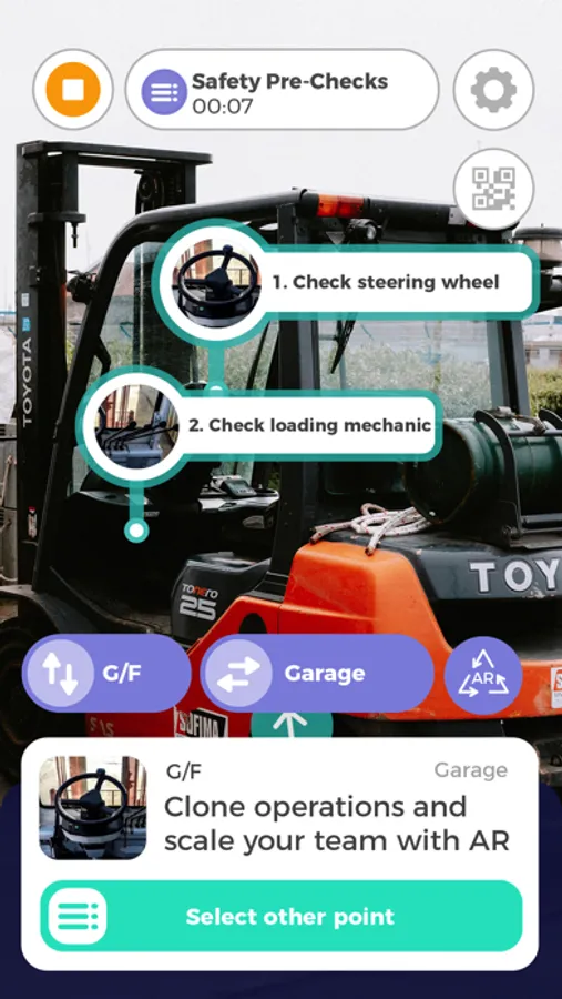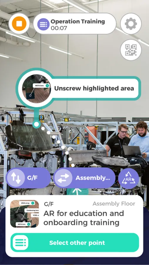 Your team can get instant access to your step-by-step guidance in the real world space, and follow steps to perform operations on your machines, assets, vehicles, facility and factory.