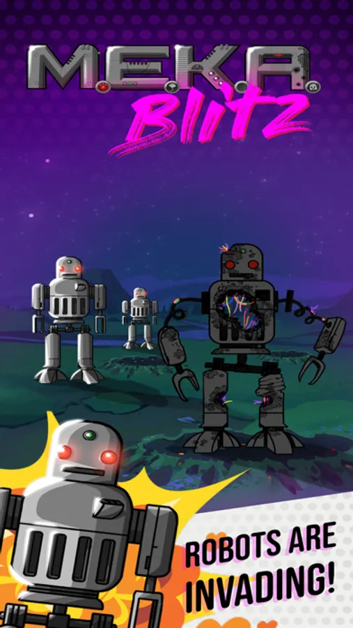 Robots are invading Earth and it's up to you to defeat them! M.E.K.A.s will drop from the sky and start their attack. Use your prototype wrist rocket launcher to take them out.