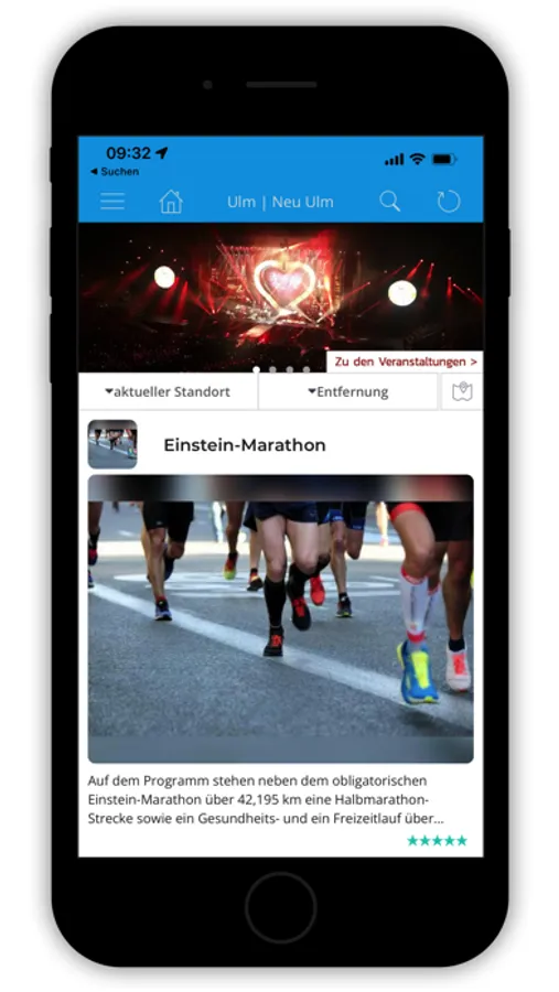Die Ulm | Neu Ulm App bietet dir einen riesigen Veranstaltungskalender mit hunderten an aktuellen Veranstaltungen. Von Festen, Konzerte mit Rock, Pop und Klassik bis zu Ausstellungen, Kabarett, Kino, Stadt- und Erlebnisführungen, Infoabende, Seminare, Vorträge, Stadtführungen und Messen bis hin zu Tipps für Familien mit Kindern. Das alles mit Eintrittspreisen, Ticket-Links, Beschreibungen, Fotos und Anfahrtsplänen.