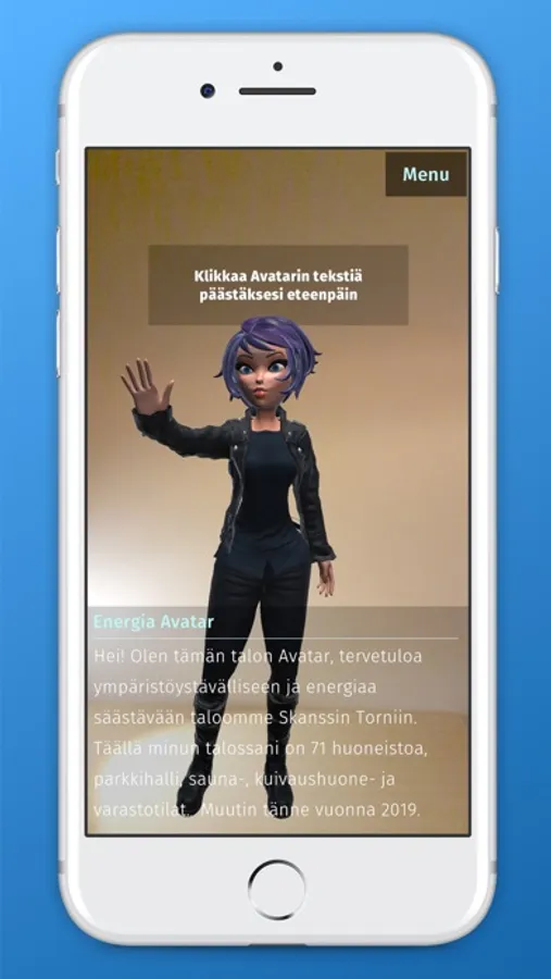 Sovelluksen avulla saat kutsuttua energia avatarin luoksesi lisättyä todellisuutta hyödyntäen. Osoita vain kamerasi lattialle ja napauta ruudulla näkyvää kohdistinta kutsuaksesi avatarin.