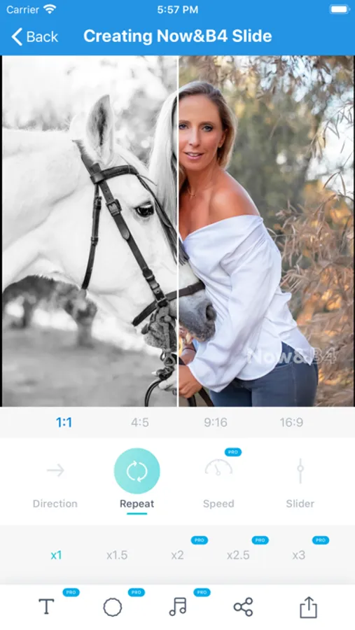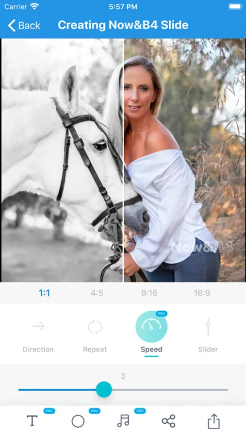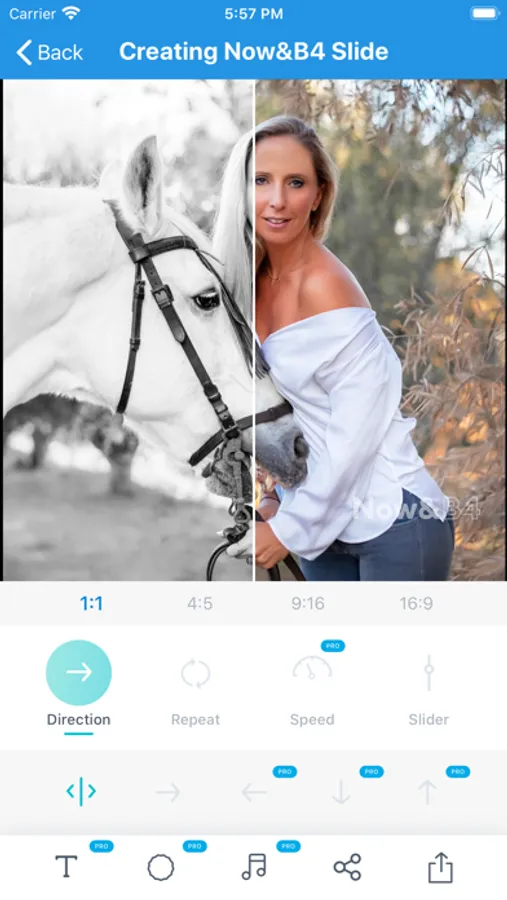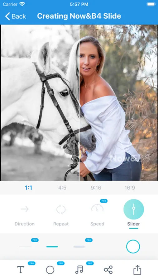 Now & B4 is an Instagram friendly app that has been created to share slides and videos in the exact formats and measurements of the Instagram posts, stories, and videos. Also, it can be shared with Messengers, Facebook, and websites.