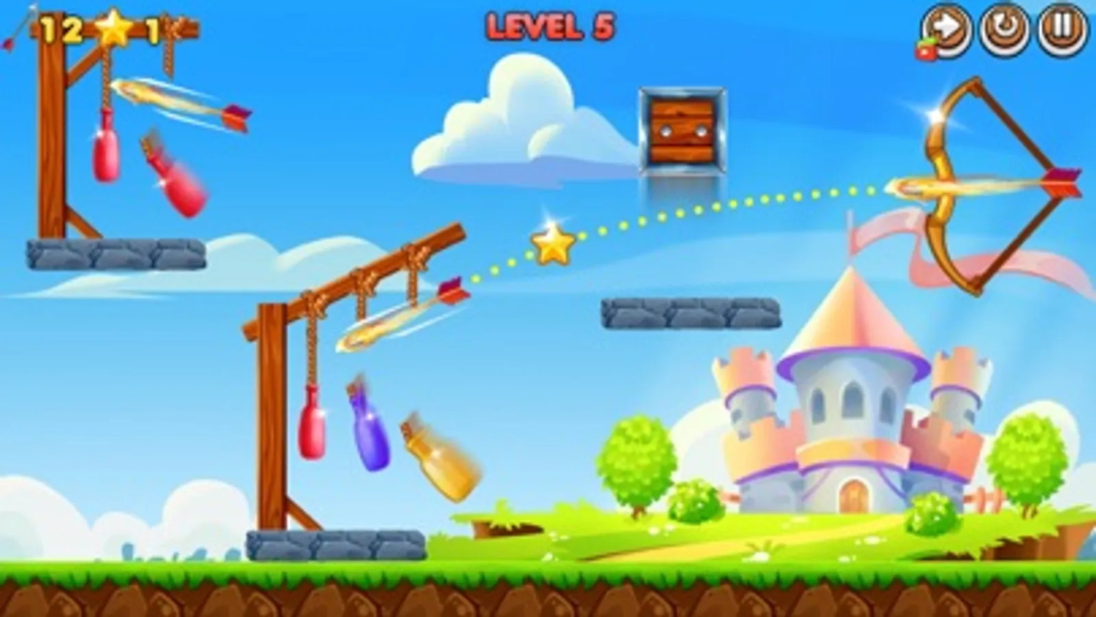 Archery Bottle Shooting Game - Hit & Knock Down is the ultimate bottle shooting game, you are looking for! Hit the Bottle Game, a fun and addictive bottle shooting game where you cut the gibbet with the bow master & arrow game that will provide you with days of fun! Become the master shooter in Gibbets archery puzzle! knock down bottles on Earth colorful bottles in order to break them, challenge your skills and progress in multiple levels! Your new favorite bottle shoot & bottle breaking game! Knock Down is a game of knock and down all the boxes standing on some floating platforms with Slingshot and shoot with birds and with Angry Balls.