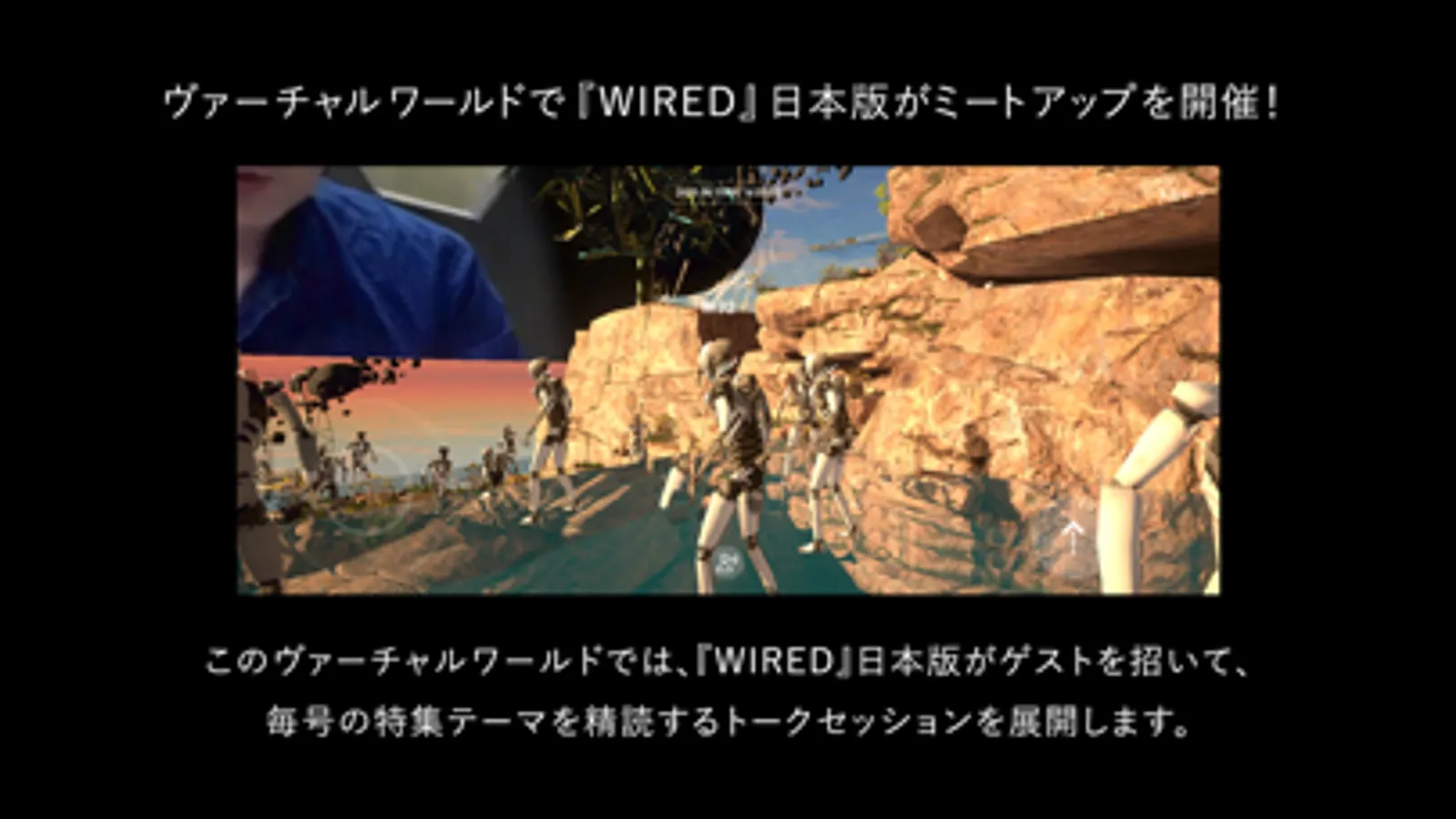 『WIRED』日本版の世界観を表現したヴァーチャル空間内でトークイヴェントを開催。その模様はヴィデオ配信され、会場中央のモニターから視聴いただけます。