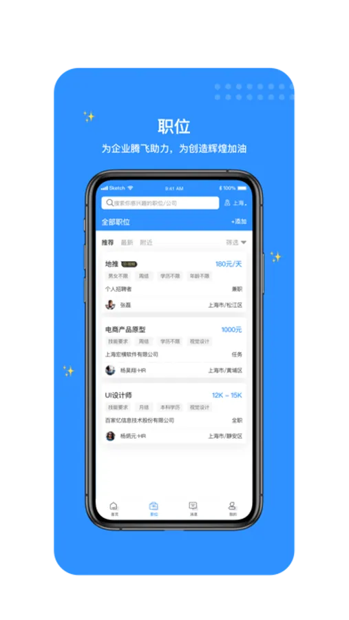 职链 是由上海佶商科技有限公司开发的一款专注于共享经济综合服务解决方案的灵活用工平台,职链主打线上企业发布职位的招聘活动,以及自由职业者线上求职活动的业务场景。职链APP优势:企业入驻职链发布招聘职位完全免费。聊天对接腾讯即时通讯技术,在线聊天无卡顿,无延时,体验感极佳!企业发布的职位平台严格审核,保障自由职业者的切身利益。