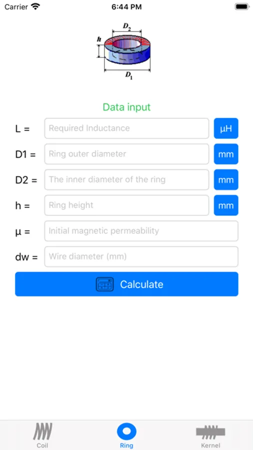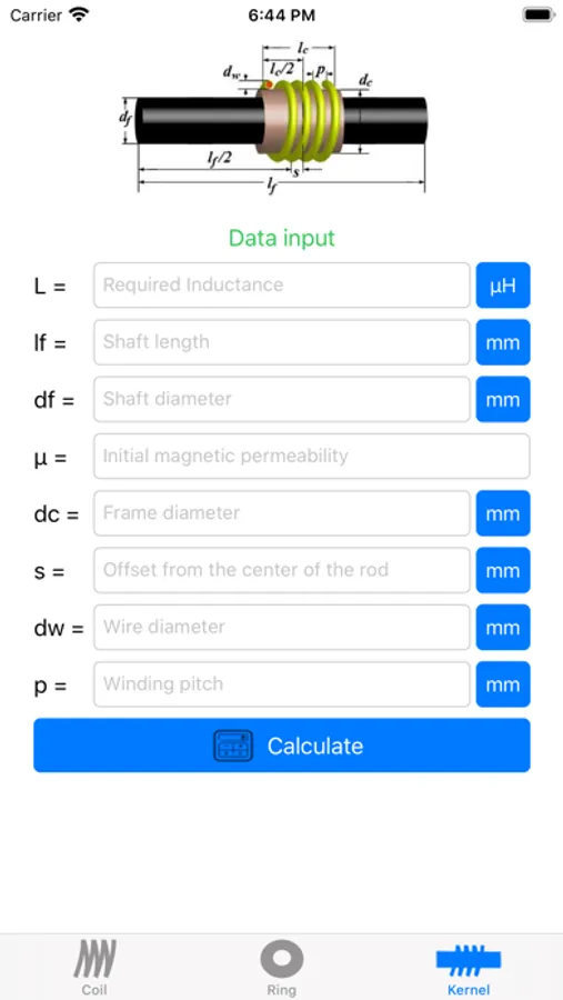 The program is designed to calculate inductors, rings and rods.