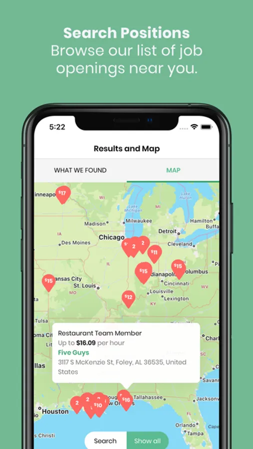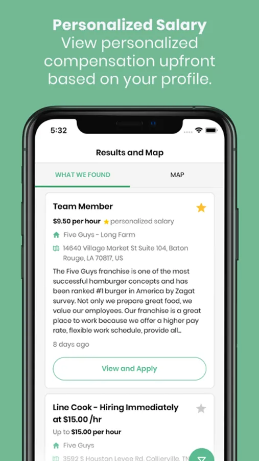 • Job search – browse our list of job openings near you with personalized compensation displayed upfront. Find jobs using free form search and preferred location. Our search has been optimized to return the most relevant positions based on search query and location.