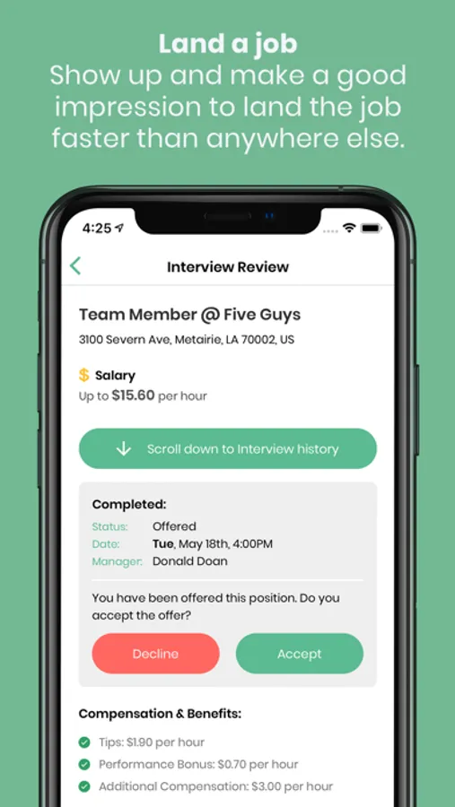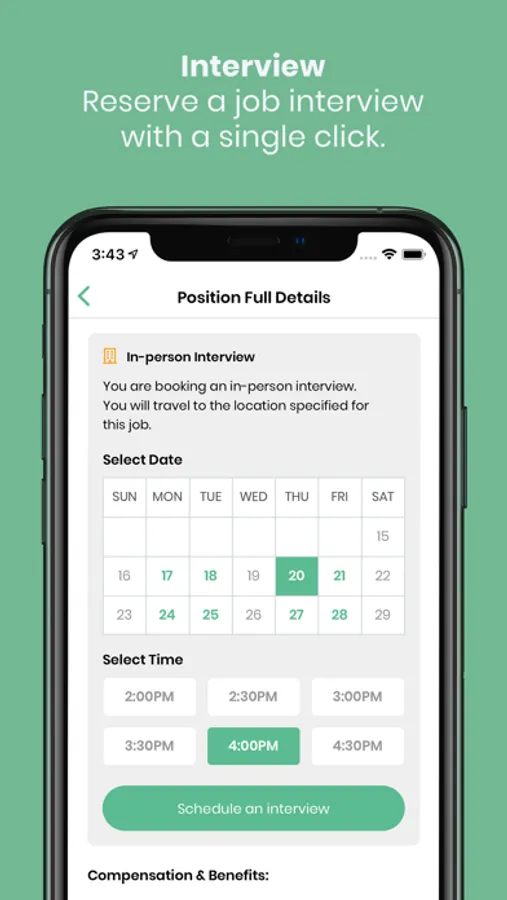 • Click to interview – single-click interview scheduling. Apply for an interview right away using our scheduling system to land a job faster. Track your interview progress directly via the application and get notified when you have been hired for a position.